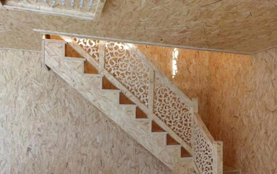 采用環保可再生的速生新鮮松木為原料,無醛添加的異氰酸酯(PMDI)為膠黏劑,通過國際先進的定向鋪裝、連續熱壓成型、實時在線監測等多道成熟工藝制成的一種綠色環保的高強度定向結構板材